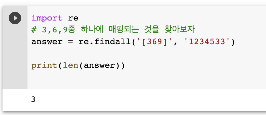 [Programmers] 369게임 (str.count(),lambda,filter,정규표현식 사용한 풀이) import re def solution1(order): ''' source: https://school.programmers.co.kr/learn/courses/30/lessons/120891 idea: 1. count() 를 이용하여 풀기 (solution1) 2. lambda() 사용 (solution2) 3. filter() 사용 (solution3) 4. 정규표현식의 findall() 사용 (solution4) ''' answer = 0 order = str(order) answer += order.count('3') answer += order.count('6') answer += order.count('9') return answer def solution2(order): order = st.. Algorithm/Programmers 2023.02.01